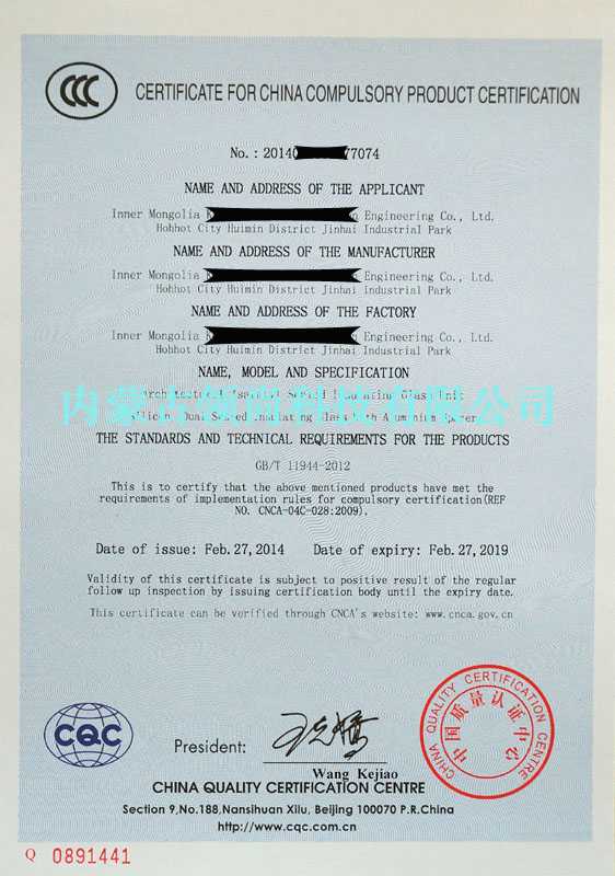 中國強(qiáng)制產(chǎn)品CCC認(rèn)證證書